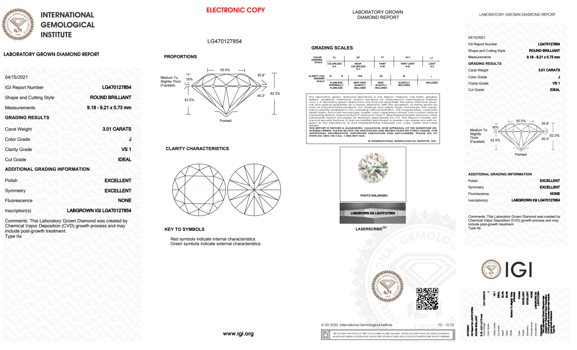 3.01 Carat round lab Diamond