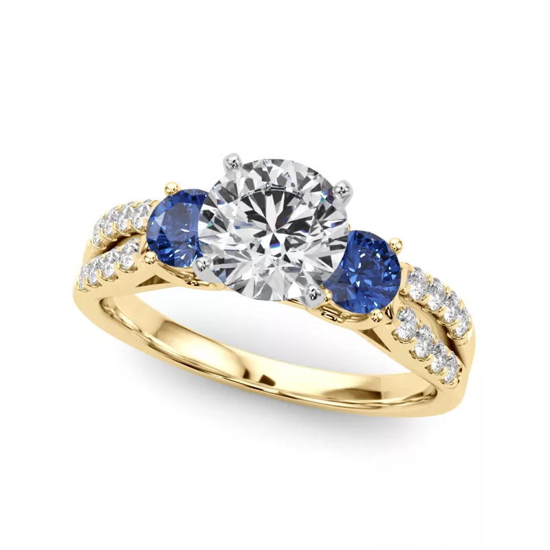 Rosella Three Stone Lab Sapphire Engagement Ring