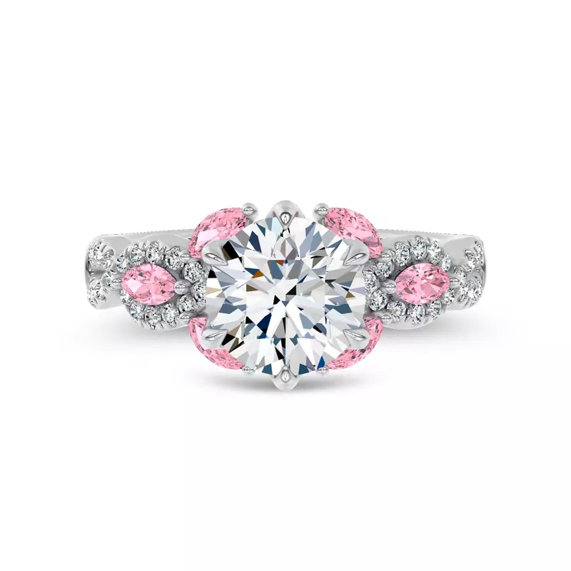 Valora Pavé Vine Pink Sapphire Lab Engagement Ring by Christian Siriano